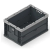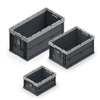 Le cassette abbattibili KRONOS sono state specificatamente progettate e realizzate per ridurre sensibilmente lo spazio di ingombro quando non utilizzate e nel trasporto dei vuoti.Il loro volume si riduce fino al 75%, consentendo un elevato risparmio nei costi di immagazzinaggio e di trasporto.Le cassette Kronos hanno un robusto bordo di sovrapposizione e pareti esterne nervate nei punti di maggiore sollecitazione. Queste caratteristiche strutturali conferiscono alle cassette una lunga durata nel tempo.Sono leggere e maneggevoli e si adattano perfettamente ai pallet normalizzati.Grazie al fondo piatto possono essere impiegate in tutti i tipi di rulliera risultando estremamente flessibili anche nella movimentazione interna.I lati corti sono completi di porta etichette e comode maniglie per una facile presa (le maniglie possono essere chiuse con l'impiego di appositi carter).In caso di utilizzo con il coperchio, e possibile sigillare la cassetta con sigilli monouso. I sigilli verranno applicati sia sul coperchio a due falde che sul sistema di apertura previsto sui due lati corti della cassetta.