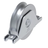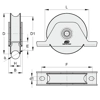 Ruota gola tonda con supporto interno forato ad avvitare. Con cuscinetti a sfere schermati a tenuta stagna. Materiale acciaio zincato. n.1 cuscinetto. Valore diametro esterno nominale. Fissaggio al portone tramite supporto con viti. Dimensioni come da schema.