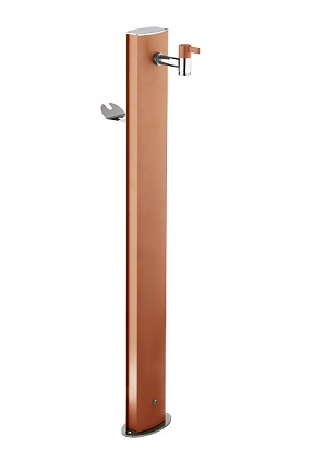 Colonna idrica ovale Totem terracotta - Codice 424TColonnina idrica ovale da posare in superficie, completo di rubinetto in tinta, sella portatubo e basamento di fissaggio.Antiruggine e resistente alle intemperie.Sella porta tubo in acciaio inox.Rubinetti in ottone cromato.Basamento di fissaggio in acciaio inox.