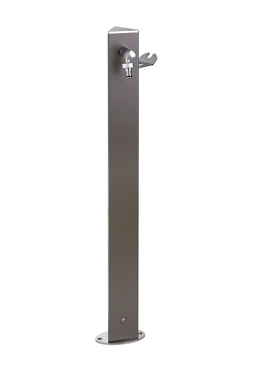 Colonna idrica triangolare grigio tortora - Codice 423GColonnina idrica triangolare da posare in superficie, completa di rubinetto, sella portatubo e basamento di fissaggio.Antiruggine e resistente alle intemperie.Sella porta tubo in acciaio inox.Rubinetti in ottone cromato.Basamento di fissaggio in acciaio inox.
