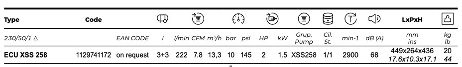 Compressore d'aria Cosmos ECU, OIL FREE, portatile, semi-professionale - XSS258. E' ideale per l'impiego abbinato ad utensili portatili ad aria compressa. Di facile trasporto grazie alle dimensioni compatte e quindi molto pratico per chi, per motivi di lavoro, deve sempre portare con sé il compressore. Completo di riduttore di pressione e cavo elettrico con spina, è pronto per entrare in funzione. Una carenatura avvolgente in materiale antiurto protegge gli elementi interni in rotazione e le parti calde da accidentali contatti dell'utilizzatore.Caratteristiche: Motore elettrico a induzione. Serbatoio doppio (3+3 lt), che garantisce una buona riserva d'aria, se si considerano le dimensioni contenute del compressore, ma che soprattutto permette un buon raffreddamento dell'aria, con maggior deposito di condensa sul fondo dei due serbatoi, per un funzionamento perfetto delle attrezzature pneumatiche utilizzate. Maniglione di presa superiore in posizione centrale (equilibrata) ricavato nella scocca della carena. Scarico condensa.Doppio manometro. Solidi piedini antiurto.