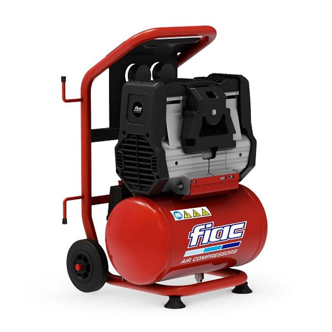 Compressore d'aria silenziato - Fiac Magnum XS88 - Articolo 1129102957.Compressore Fiac della serie XS, un compressore a pistoni silenziato che unisce avanzate caratteristiche tecniche ad un impatto sonoro comparabile a quello di una normale conversazione. Il design made in Italy del gruppo pompante garantisce sicurezza, comfort e prestazioni di alto livello. La serie XS raggiunge i 9 bar di pressione, permettendo l'utilizzi di strumenti professionali e numerose applicazioni nonostante le ridotte dimensioni esterne.Infine il funzionamento "oil free" fornisce un flusso d'aria costante con una manutenzione richiesta minima.Vantaggi:Grande comfort di utilizzo: maniglia ergonomica per un comfort extra di utilizzo.Facilità negli spostamenti: grazie alle ruote si può muovere facilmente senza sollevarlo.Design innovativo: esclusivo gruppo pompante con protezioni in plastica che aumentano la sicurezza e riducono la rumorosità.