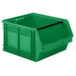 I contenitori serie Compat sono la soluzione ideale ad ogni problema di stoccaggio, in magazzino, in officina, lungo le linee di montaggio.Consentono di avere sempre a portata di mano e ben in vista il contenuto, rendendolo prelevabile con estrema facilita.Questi contenitori sono impilabili in modo stabile e sicuro e la pronta disponibilità del materiale non viene meno anche quando sono sovrapposti.Per i contenitori più voluminosi è previsto un traversino fissato anteriormente (in dotazione) per evitare qualsiasi deformazione delle pareti laterali in caso di grande carico e di facilitarne la presa. Fondo liscio.