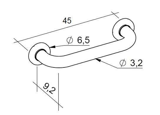 Corrimano lineare realizzato in acciaio con finitura laccata a polvere epossidica - Codice articolo EH-N18-PCX. Completo di ghiere coprivite nella stessa finitura del tubo e di piastre di fissaggio in nylon che isolano elettricamente il corrimano dalla parete.Può essere montato in posizione orizzontale o verticale.