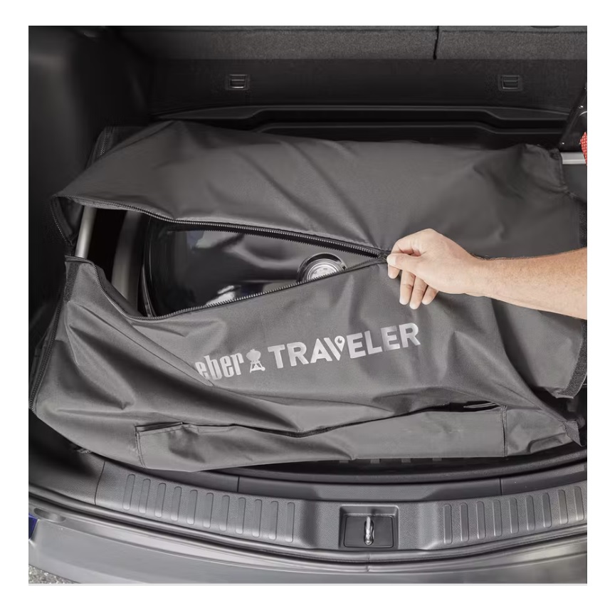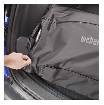 Custodia per barbecue Traveler - art. Weber 7030. Realizzata in tessuto repellente, per proteggere il proprio veicolo dal grasso e dallo sporco quando si cucina in viaggio con il barbecue Weber Traveler.Il guscio aderisce perfettamente al Weber Traveler, limitando lo spargimento di grasso e residui e mantenendo puliti gli altri oggetti presenti nel vano portabagagli durante il trasporto. Una volta ripiegata, raggiunge dimensioni contenute per essere comodamente conservata quando non viene utilizzata. Tasche portaoggetti integrate per gli utensili.