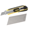 Corpo in materiale sintetico "bi-material", telaio in acciaio inox contenente 6 lame. Estremamente robusto. Caricamento automatico della lama. Pulsante bloccalama in punta. Cursore in matetiriale sintetico "bi-material". Elemento pulisci lama in punta. Estremità spezzalama estraibile.