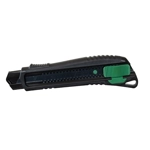 Cutter in ABS gommato. Robusto e resistente con rivestimento gommato per un miglior comfort di utilizzo. Portalama in acciaio inossidabile e lama SK2 affilata a laser, in dotazione. Cursore di regolazione e autobloccaggio lama. Pulsante per cambio lama rapido.