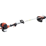 Decespugliatore con sistema High Torque. +Operatività: maggiore superficie tagliata in minor tempo e con minor fatica. +50% di coppia: prestazioni elevate anche in condizioni difficili. +Durata: minore surriscaldamento del motore. Decespugliatore in grado di soddisfare sia il privato che deve gestire ampie aree di lavoro, che i professionisti più esigenti. Grazie al rivoluzionario sistema High Torque offre un'operatività eccezionale con consumi ridotti, peso contenuto e basse vibrazioni. Dal 2012 la Echo ha introdotto nella gamma dei decespugliatori la linea High Torque. Le macchine High Torque montano una coppia conica di nuovissima generazione che è in grado di aumentare le prestazioni del 50% rispetto alle versioni normali, con una maggiore capacità di taglio. La coppia conica è supportata da un maggior numero di cuscinetti di aumentata dimensione. Coppie coniche normali, in fase di sfalcio di erba folta e spessa, portano ad una diminuzione dei giri del motore, ad una diminuzione dei giri del volano, con conseguente surriscaldamento del gruppo termico e rischio di annerimento del pistone, di incollaggio delle fasce e di grippaggio. Tutto questo arriva ad intaccare anche il carburatore con perdita prestazionale. Le coppie coniche High Torque evitano tutto questo, e mantengono il motore ad un regime di giri più elevato, con conseguente combustione ottimale e riduzione dei consumi di carburante. La superiore capacità di taglio offerta dai modelli High Torque, permette di lavorare con una lunghezza utile di filo superiore e una testina più capiente, andando così a ridurre i tempi morti per la ricarica del filo. Rispetta le normative EURO2 in materia di emissioni. I decespugliatori ECHO sono caratterizzati da una lunga durata, da manovrabilità, robustezza, forza, bilanciamento e da basse vibrazioni; riescono ad essere leggeri e potenti allo stesso tempo. Un altro elemento che caratterizza i prodotti ECHO è la marmitta a basso rumore, in grado di dare all'utilizzatore soddisfazione e comfort nell'utilizzo.Caratteristiche Tecniche Rapporto ingranaggi e lubrificante: 2,07 riduzione e grasso al litio di buona qualità.Senso di rotazione dell'alberino di uscita visto dall'alto: senso antiorario.Dotato di:Primer per avvio facilitato.Sistema antivibrante.Blocco acceleratore.Tappo miscela laterale.Marmitta a basso rumore.