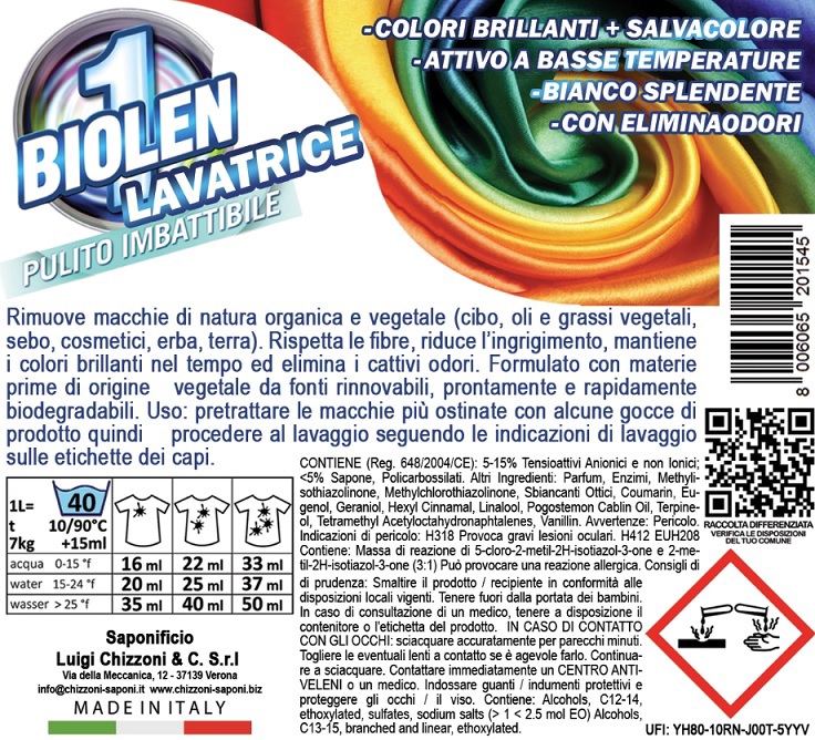 Altri ingredienti: profumo, Parfum, Coumarin, Hexyl Cinnamal, Enzimi, Methylisothiazolinone, Methylchlorothiazolinone, Sbiancanti Ottici.