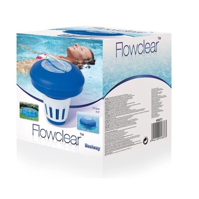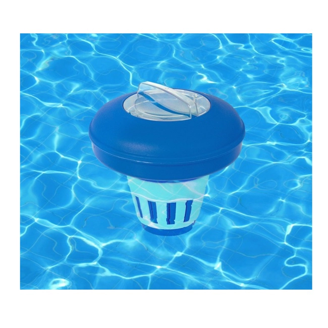 Ogni giorno nell'acqua della vostra piscina si introducono microrganismi, elementi contaminanti, spore di alghe, batteri, polvere, fuliggine e sporcizia che sono dannose per la salute dei bagnanti.Le particelle di sporcizia e la torbidità, i microrganismi come alghe, batteri e virus sono eliminabili da un buon impianto di filtrazione e da un efficace trattamento disinfettante.Per disinfettare l'acqua di piscina esistono in commercio vari prodotti ma, sicuramente il più efficace ed economico è il cloro, nella fattispecie il tricloro in pastiglie o in polvere e il dicloro granulare.Pulire però la piscina con il cloro è una pratica che può risultare noiosa quindi cosa c'è di meglio di qualcuno o di qualcosa che lo faccia per voi? Un dispenser per il cloro per esempio! Piccolo, comodo e galleggiante! Saprà disinfettare la vostra piscina in modo graduale ma efficace mentre voi vi rilassate comodamente in acqua.Adatto anche per il bromo.