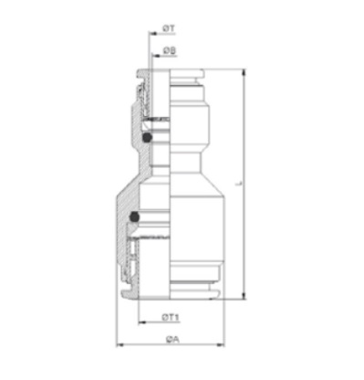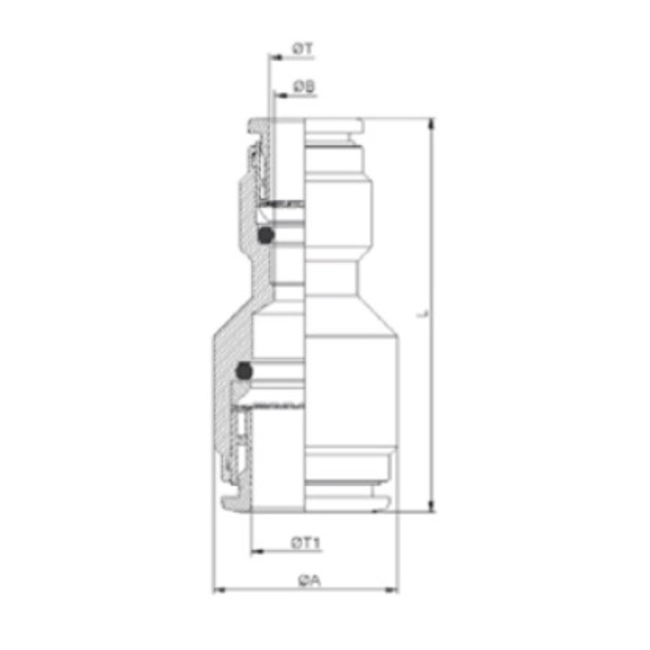 Diritto intermedio - Cod. RK530004Innesto e disinnesto rapido Filettatura BSPP cilindrica UNI-ISO228 - ISO16030 con O-Ring, BSPT conica UNI-ISO 7 teflonata, Metrica ISO/R 262Guarnizione in NBR Silicon free Portata piena rispetto al tubo utilizzato