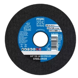 Disco da taglio 125X1,0 A46 SG-Steelox B22,23 Disco da taglio per acciaio e acciaio inossidabile (INOX) con alte prestazioni di taglio e durata elevatissima.Adatto per lavorazioni di acciaio inoxNumero materiale: 61341112N.giri max 12200 min-¹Tipi di lavorazione:praticare fori e apertureTaglio di lamieretagliaretaglio di profilatiTaglio di materiale pieno
