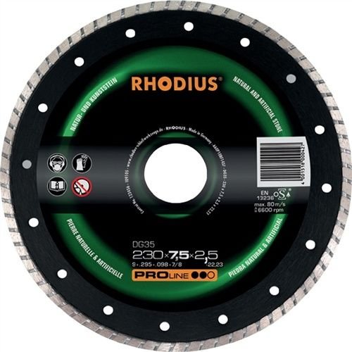 Disco Rhodius diamantato calcestruzzo da 230x7,5x2,5x22,23 - DG35 - 302245 - Serie ProLine. Disco diamantato a settori con legante estremamente resistente all'abrasione. Elevata sicurezza grazie ai segmenti di protezione obliqui. Elevata rimozione del materiale. MaterialeMateriali da costruzione Laterizi Clinker molto duro Ardesia Pietra calcarea Informazioni generali Da un disco diamantato gli utilizzatori professionali si attendono un taglio veloce e una lunga durata, sia che si lavori sulla pietra naturale, sulle piastrelle, sul calcestruzzo o sull'asfalto. La performance del disco diamantato nell'impiego pratico dipende sostanzialmente da tre fattori: la qualità dei diamanti, la durezza del legante e la forma del bordo di taglio. I diamanti di produzione industriale di alta qualità ci consentono di offrire dischi diamantati dalle caratteristiche ottimali. Vengono prodotti in grafite sotto elevata pressione e ad alte temperature. Pertanto, a differenza dei diamanti naturali, le proprietà tipiche sono riproducibili in qualsiasi momento. Non esistono dischi da taglio diamantati universali ed utilizzabili per qualsiasi tipo di applicazione. Il materiale su cui lavorare è determinante per la scelta del disco diamantato ideale. I seguenti dettagli rivestono la massima importanza durante l'impiego dei dischi diamantati Purezza Grado di durezza Affilatura dei bordi Geometria costante Il segmento legante I diamanti presenti nel disco da taglio diamantato sono integrati sul segmento mediante un legante metallico. La composizione della polvere metallica che costituisce il legante viene selezionata in base all'utilizzo del disco da taglio. Quando si devono tagliare materiali di costruzione abrasivi, è necessario selezionare un segmento rigido. Nel caso in cui il disco da taglio sia destinato a materiali rigidi, un legante morbido sarà la scelta più idonea. Le diverse proprietà del legante influenzano pertanto le capacità di taglio e l'usura del segmento. Le tipologie di bordi di taglio La forma del bordo tagliente è altrettanto decisiva per l'asportazione del materiale e per la performance del taglio durante l'uso. Di norma, vi sono tre tipologie di bordi di taglio.