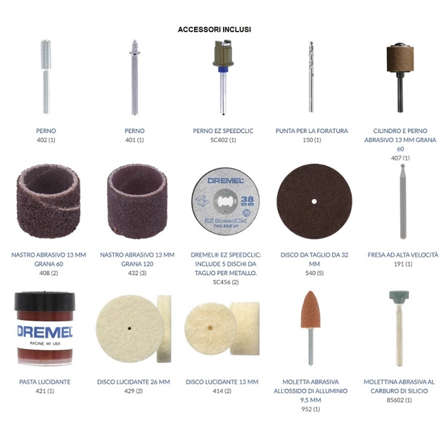 DREMEL 3000-1/25 EZ - CODICE F0133000JS. Il kit comprende il multiutensile Dremel 3000, l'albero flessibile Dremel di alta qualità e 25 accessori originali tra cui EZ SpeedClic. Tutto è contenuto in una ben organizzata valigetta che comprende un vassoio rimovibile per gli accessori e un supporto utensile che può essere fissato alla parete e consente di avvolgere. EZ Twist: passate facilmente da un'applicazione all'altra in 1 o più progetti. Dotato di una robusta valigetta, il kit dispone anche di un supporto per montare l'utensile alla parete e avvolgere il cavo di alimentazione. 2 anni di garanzia. Per tutti i progetti di precisione fai-da-te: intagliare, incidere, fresare, tagliare, levigare, smerigliare, affilare, lucidare e pulire.