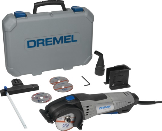 Grazie alla visuale eccellente, un motore potente e l'impiego di dischi abrasivi, questa sega esegue con facilità e precisione tagli dritti, dal pieno e a filo in materiali spessi fino a 20 mm.Il prodotto viene fornito con un'ampia gamma di dischi da taglio abrasivi che, in combinazione con l'attacco per aspirapolvere, permettono di eseguire lavori puliti e accurati su legno, metallo, plastica, pietra e piastrelle.Il kit comprende tre complementi che contribuiscono a potenziare la capacità di taglio del Dremel DSM20. Tagliare parallelamente al bordo di lavoro è semplice con la guida parallela mentre la guida da taglio 2x4 può essere utilizzata per eseguire tagli veloci e precisi in travi di legno 2x4.