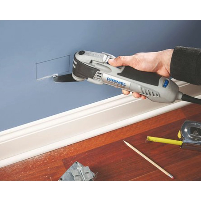Lama a spinta seghettata Dremel® Multi-Max (MM435). Il seghetto consente di effettuare tagli dritti, curvi e dal pieno nel cartongesso e nel calcestruzzo poroso.