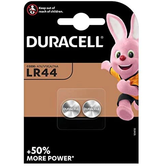 Batterie Duracell LR44 - Codice LR44.Le batterie Duracell specialistiche a bottone alcaline LR44: fino al 50% di energia in più.Hanno una durata fino a 5 anni se correttamente conservate nella confezione.Adatte per essere utilizzate in giocattoli, calcolatrici e dispositivi di misurazione.Secondo i test standard IEC per la durata media minima per il tipo LR44; i risultati possono variare a seconda dei dispositivi e dei modi d'uso.Confezione da 2 pz.