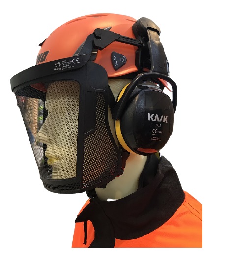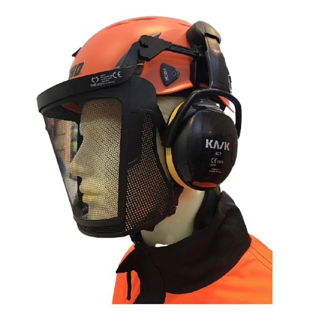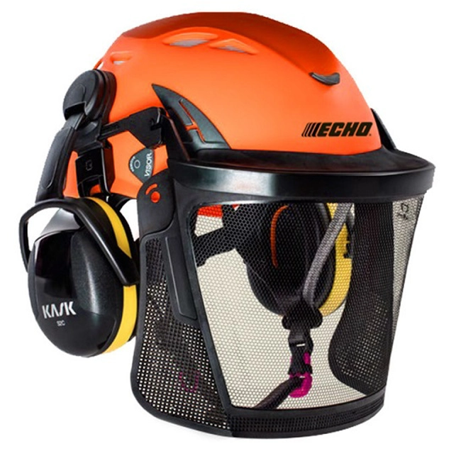 Elmetto Climbing Kask completo Echo - Codice ECA701370.Elmetto per Tree Climbing completo di cuffie e visiera a rete, omologato per l'industria, lavori in quota e servizio sanitario di emergenza e soccorso. Certificato CE.