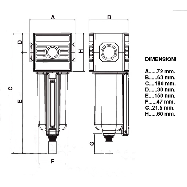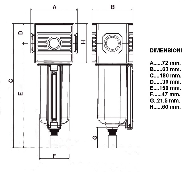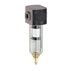 Questo filtro modulare è stato progettato per rimuovere impurità liquide e solide negli impianti pneumatici. E' dotato di una cartuccia filtrante in PE che trattiene impurità con dimensioni superiori a 40 µ. La modularità permette di poter assemblare in un unico blocco, più elementi della stessa famiglia con funzioni diverse. CaratteristicheCorpo metallico verniciato con polveri epossidiche. Bicchiere con aggancio rapido in tecnopolimero con capacità di 50 cm³. Dispositivo di scarico semiautomatico. Completo di raccordo per attacco tubo di drenaggio. Deflettore e convogliatore d'aria per una efficace separazione della condensa. Fluido: aria compressa.Temperatura di esercizio da -25° a +50° Filtrazione standard 40 µModello E/20/3