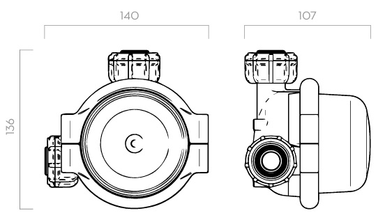 140x136x107 mm. Imballo 200x120x140 mm.