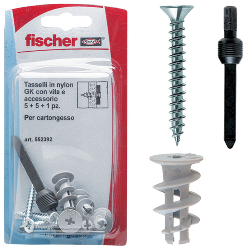 GK S K - Tassello in nylon con vite testa svasata piana per cartongesso, in blister
