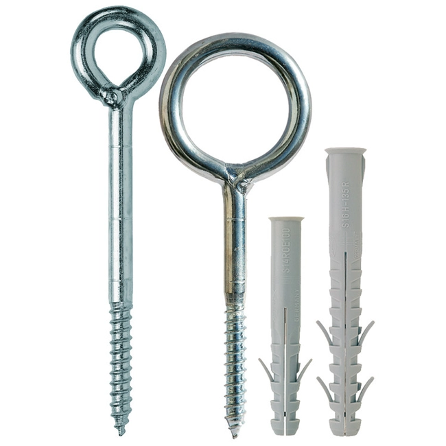S14 ROE 185 - Sistema completo per ponteggi: tassello in nylon prolungato S 14 ROE o S 16 HR con vite ad occhiolo chiuso e filettatura legno