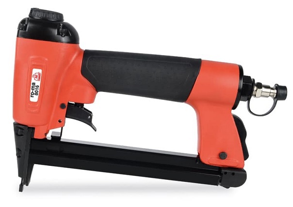 Fissatrice pneumatica modello RO-MA 8016 - Codice 0153142. QUESTA MACCHINA E' L'AGGIORNAMENTO DELLA MACCHINA MEK 80. Per punti serie 80. Potente, leggera e compatta. Impugnatura in gomma antiscivolo.