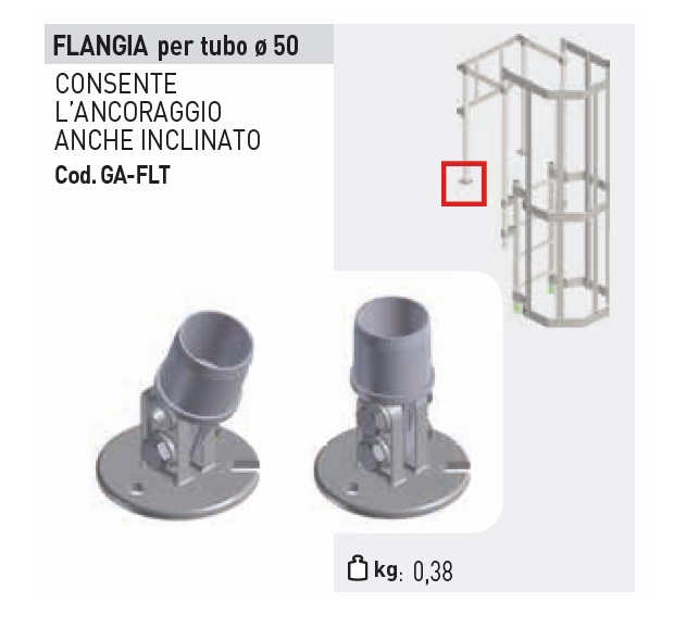 Rif. Facal GA-FLT. Consente l'ancoraggio anche inclinato. Per scale a gabbia Security System.