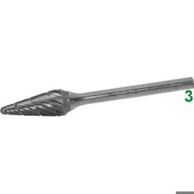 FRESE ROTATIVE IN METALLO DURO TIPO CONICO CON PUNTA SFERICA. ATTACCO Ø MM 3 TAGLIO 3