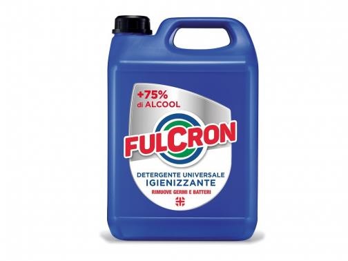 Fulcron detergente universale igienizzante +75% Alcool 5 litri rimuove germi e batteri - Codice 2026.A base alcolica ad alta concentrazione è l'ideale per l'igienizzazione delle superfici della casa e del lavoro. Ideale per pulire e igienizzare tutti i materiali quali superfici metalliche, legno, plastica, vetro, ceramica, ecc. La speciale formula di Fulcron detergente igienizzante è in linea con le raccomandazioni dell'Istituto Superiore di Sanità per la pulizia ed igienizzazione delle superfici e contiene più del 75% di alcool etilico (etanolo). Rimuove germi e batteri con azione meccanica, non è un disinfettante. Non lascia residui chimici aggressivi e non richiede risciacquo, lascia un gradevole profumo al limone. Adatto anche per l'igiene di seggioloni, superfici della cucina, fasciatoi, superfici del bagno, frigorifero. Caratteristiche tecnicheOdore: limone/alcolicoDensità g/ml 0,861 Contenuto di etanolo % >75pH 7,0