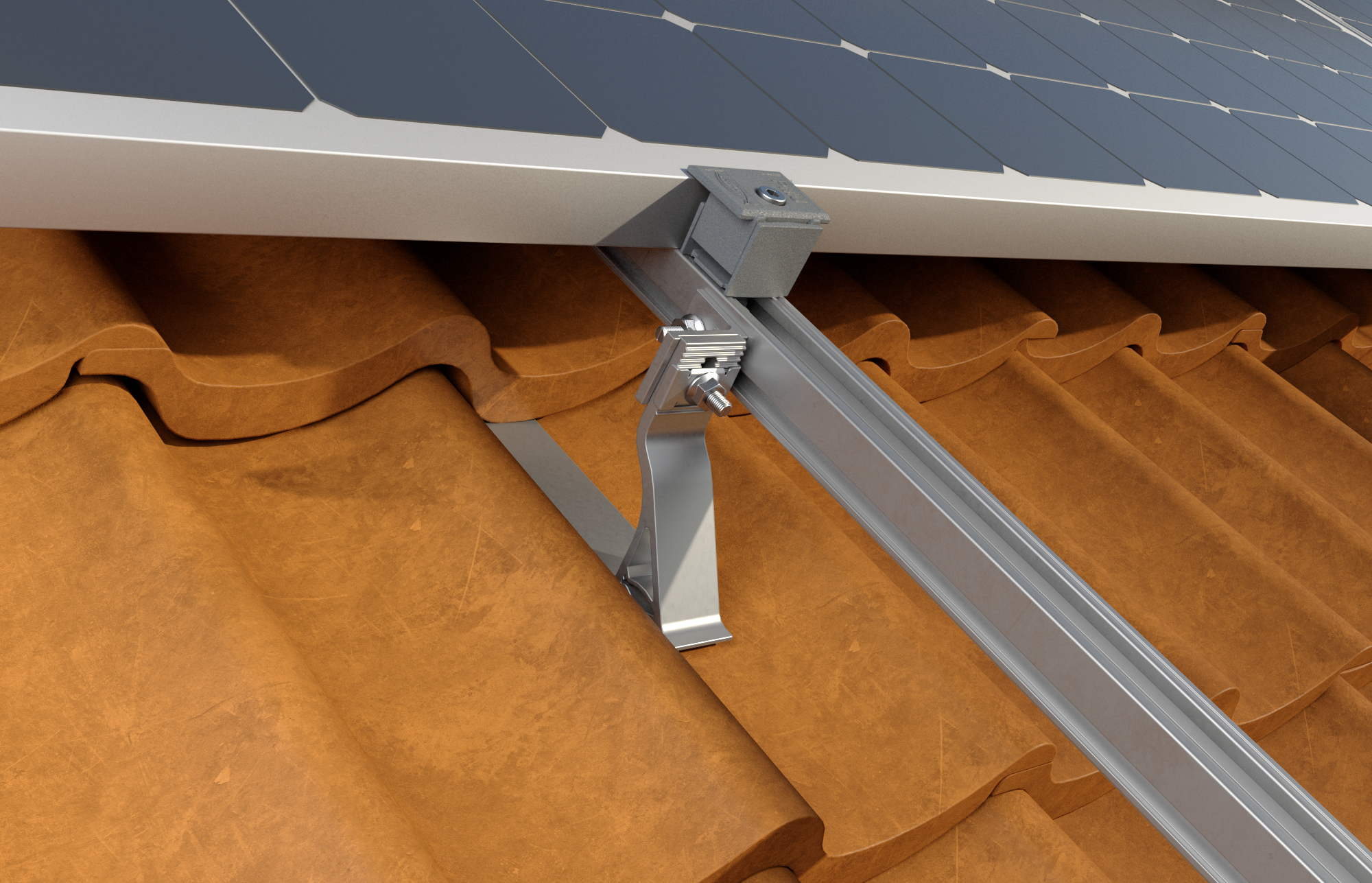 CH 30-53 AL - Gancio a pinza in alluminio per installazione di impianti fotovoltaici su coperture in tegole con ventilazione.