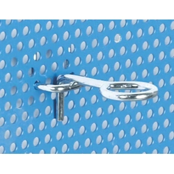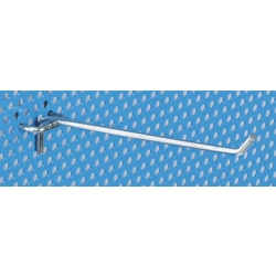 Realizzato in acciaio zincato. Gancio per pannelli forati a foro tondo, per vari oggetti come forbici, chiavi ed altri attrezzi da lavoro. Confezione da 25 pezzi