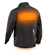 Il sistema di riscaldamento in fibra di carbonio distribuisce il calore in modo uniforme su petto, schiena e tasche frontali, garantendo una sensazione di calore costante e avvolgente.