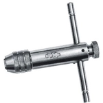 Tipo corto, di elevata qualità dotato di LIVELLA sulla testa dell'utensile, per facilitare il corretto allineamento del maschio con l'imbocco del foro.Per uso fisso, destro e sinistro. Con pinza a 2 griffe temprate.Esecuzione cromata.