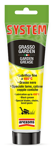 Grasso garden - Codice 9805. Lubrificante a base di litio complesso arricchito con bisolfuro di molibdeno e grafite, con additivi antiossidanti, antiruggine ed E.P. (estreme pressioni). Per giunti, bracci articolati, corone dentate, coppie coniche e giunti omocinetici.