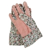 Guanti da giardino in cotone. Dorso con stampa fiori colorata. Palmo antiscivolo.