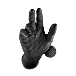 Specifiche Guanti in nitrile AQL 1.5. Monouso, ambidestri. Senza polvere, clorinati.Spessore 0,10 mm.Finitura esterna granitiforme. Bordino arrotolato salvagoccia. Elevata sensibilità e destrezza. Lunghezza (24,5 cm. ca – taglia L). Idonei al contatto alimentare.Conformi all’impiego in campo medicale.