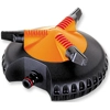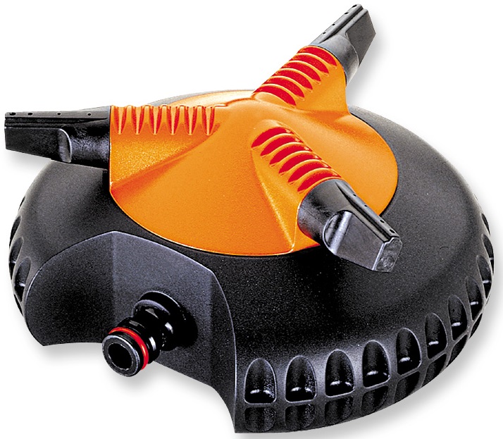 Irrigatore rotante a tre braccia, costruito interamente in robusto ABS ed azionato dalla sola forza dell'acqua, subito pronto all'uso, proietta su un'ampia area circolare dei getti d'acqua uniformi e mirati, grazie agli ugelli orientabili, che ottimizzano il rendimento anche a bassa pressione. La speciale forma arrotondata ne permette il facile trascinamento sul prato. Oltre ad annaffiare, crea piacevoli e decorativi giochi d'acqua. Bagna aree circolari con pioggia leggera.