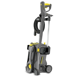 Idropulitrice a freddo HD5/15C PLUS - Codice Kärcher 1.520-997.0. Compatta, leggera e versatile; l'idropulitrice ad acqua fredda HD 5/15 C Plus impressiona per l'eccellente mobilità, ed è adatta sia per il funzionamento in verticale che per quello in orizzontale. Durante l'impiego in orizzontale, le ruote sono sollevate da terra garantendo un'elevata stabilità. La testata è in ottone con pistoni in acciaio, garantiscono la lunga vita della macchina. Scarico automatico della pressione che protegge i componenti e prolunga la durata della macchina.Pistola EASY!Force che sfrutta la contropressione dell'acqua per ridurre a zero lo sforzo dell'operatore per tenere aperta la pistola. Raccordi rapidi EASY!Lock durevoli e resistenti. Cinque volte più rapidi dei convenzionali raccordi a vite. La macchina è adatta a lavorare quotidianamente in condizioni difficili. Con impugnatura alla base della macchina per migliorare trasportabilità e deposito della stessa.Grande filtro per l'acqua a maglie strette, facile da pulire, per proteggere la pompa da particelle di sporco presenti nell'acqua. Raccordo a vite (M18 x 1.5) per riporre il lavasuperfici sulla macchina. Fascetta elastica per fissare il tubo alta pressione.