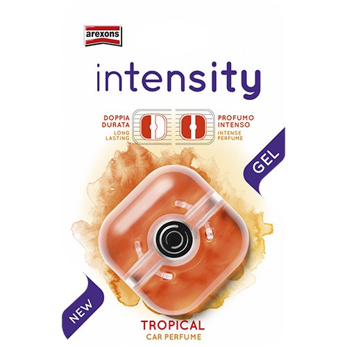 Intensity Tropical Profumatore - Codice 1859.Intensity di Arexons è un profumatore per bocchetta in gel siliconico di ultima generazione ad elevato contenuto di fragranza.Grazie alla sua formula in gel non gocciola e si adatta perfettamente a qualsiasi tipo di bocchetta di ventilazione, rivoluzionando il concetto di profumatore per auto.Dotato di una forma minimal, è basato su un sistema innovativo a due vaschette apribili separatamente che permette di scegliere l'intensità della fragranza: una sola camera per una profumazione più "soft", con doppia durata oppure entrambe le camere per una profumazione più "intensa".La fragranza Tropical è ispirata alle località tropicali, la tipica fragranza al gusto di frutta con note di melone, banana, kiwi e cannella.