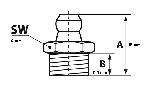 Testina ingrassatore conico H1-dritto M 8 x 1,25-VZ-SK-SW 9. - Art.15 010. Esagonale (SK).