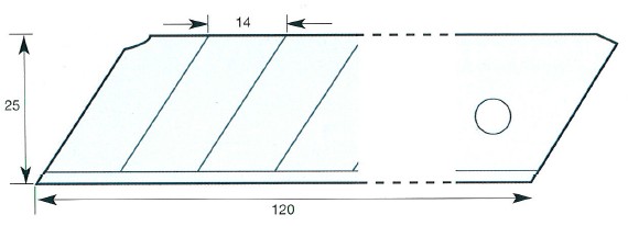 Modello gigante. Composte da 7 elementi a spezzare da 14 mm. Confezione da 10 lame.