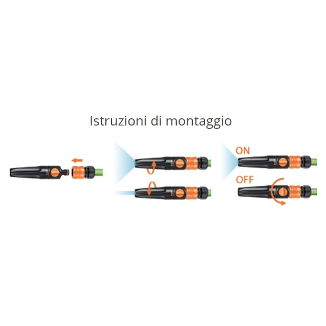 Lancia Plus - art. Claber 8536. Lancia con doppia regolazione del flusso d'acqua e del getto: da tutto chiuso a tutto aperto (concentrato o nebulizzato). Compatta e funzionale, per ottenere facilmente il getto d'acqua desiderato, senza sprecare una goccia. Comoda manopola che consente di regolare in qualsiasi istante la portata dell'acqua, per soddisfare ogni esigenza di irrigazione. Ruotando il cappuccio si può regolare il getto, da concentrato a nebulizzato. Cappuccio dotato di fermo antisvitamento, che impedisce di svitarlo completamente, per evitare di perderlo. Fornita sfusa (senza blister).