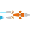 Lancia di nuovo design moderno e dalle forme ergonomiche ed eleganti. Consente una semplice e perfetta regolazione del getto d’acqua, senza sprecare una goccia, semplicemente ruotando il cappuccio: da tutto chiuso a tutto aperto (concentrato o nebulizzato), a seconda delle esigenze di irrigazione e del tipo di coltura. Il cappuccio è dotato di un apposito sistema che impedisce di svitarlo completamente, per evitare di perderlo.