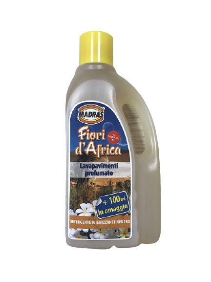 Lavapavimenti profumato 1000 ml - Codice MD2FA1.Detergente igienizzante neutro - Profumazione fiori d'Africa.Lavapavimenti profumato è un detergente igienizzante concentrato a pH neutro, ideale per la pulizia di tutte le superfici lavabili della casa.Il prodotto è neutro, e può essere usato su qualsiasi superficie lucida, trattata o cerata (escluso il legno grezzo), rinnova la brillantezza senza lasciare aloni e senza risciacquo, riducendo la necessità di continue cerature.