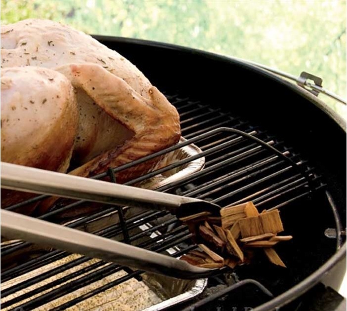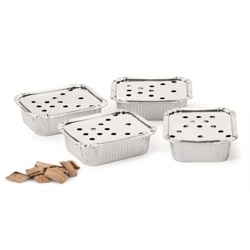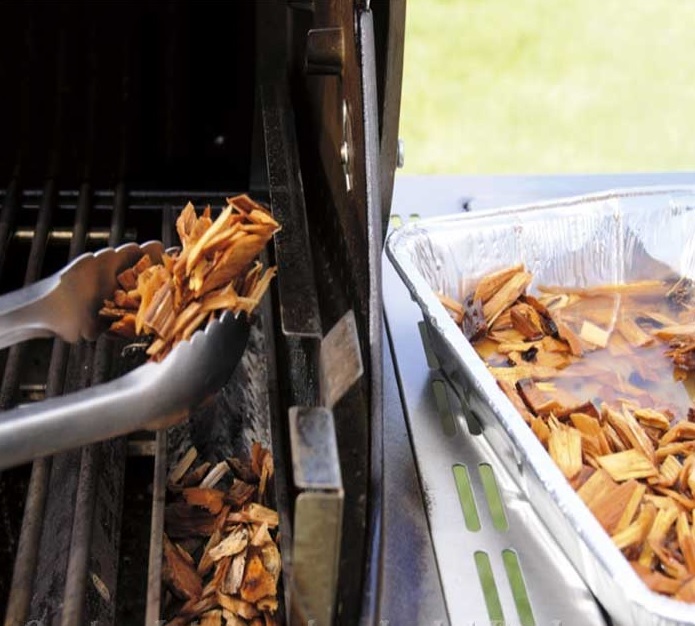 Chips di legno aromatici al Melo.Trucioli di legno trinciati grossolanamente ideali per affumicare i cibi a brevi intervalli. Possono essere utilizzati in un barbecue a carbone gettandoli sulla brace incandescente oppure in un barbecue a gas se munito di affumicatoio. (Si consiglia di immergere le scaglie in acqua 30 minuti prima dell' uso). I pezzi di legno sono ottimi per ottenere il sapore di affumicatura ai cibi e possono rappresentare una perfetta alternativa ai bricchetti di carbone come sorgente di calore per la cottura. Per ottenere un sapore supplementare durante la cottura si immergono 1 o 2 pezzi di legno nell'acqua per due ore prima di iniziare a cuocere. (Il legno bagnato produrrà più fumo e più odore). Prima di sistemare il cibo sulla griglia di cottura, si posizionano i pezzi di legno umidi sui carboni caldi. Più pezzi di legno si utilizzano, maggiore sarà l'aroma di affumicatura. Per utilizzare come sorgente di calore si costruisce una piramide con i pezzi di legno asciutti. Bisogna poi dare fuoco ai pezzi di legno 30 minuti prima della cottura. Una volta che i pezzi di legno hanno iniziato a bruciare, vanno aggiunti altri pezzi in modo da sviluppare un forte calore. Quando i pezzi di legno sono arroventati e striati di cenere bianca, vanno distribuiti in modo da formare un solo strato e iniziare la cottura. Per aumentare l'aroma di affumicatura, è possibile aggiungere 1 o 2 pezzi di legno inumiditi agli altri pezzi prima di posizionare il cibo sulla griglia di cottura.