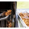 Chips di legno aromatici all’Hickory. Trucioli di legno trinciati grossolanamente ideali per affumicare i cibi a brevi intervalli. Possono essere utilizzati in un barbecue a carbone gettandoli sulla brace incandescente oppure in un barbecue a gas se munito di affumicatoio. (Si consiglia di immergere le scaglie in acqua 30 minuti prima dell' uso). I pezzi di legno sono ottimi per ottenere il sapore di affumicatura ai cibi e possono rappresentare una perfetta alternativa ai bricchetti di carbone come sorgente di calore per la cottura. Per ottenere un sapore supplementare durante la cottura si immergono 1 o 2 pezzi di legno nell'acqua per due ore prima di iniziare a cuocere. (Il legno bagnato produrrà più fumo e più odore). Prima di sistemare il cibo sulla griglia di cottura, si posizionano i pezzi di legno umidi sui carboni caldi. Più pezzi di legno si utilizzano, maggiore sarà l'aroma di affumicatura. Per utilizzare come sorgente di calore si costruisce una piramide con i pezzi di legno asciutti. Bisogna poi dare fuoco ai pezzi di legno 30 minuti prima della cottura. Una volta che i pezzi di legno hanno iniziato a bruciare, vanno aggiunti altri pezzi in modo da sviluppare un forte calore. Quando i pezzi di legno sono arroventati e striati di cenere bianca, vanno distribuiti in modo da formare un solo strato e iniziare la cottura. Per aumentare l'aroma di affumicatura, è possibile aggiungere 1 o 2 pezzi di legno inumiditi agli altri pezzi prima di posizionare il cibo sulla griglia di cottura.