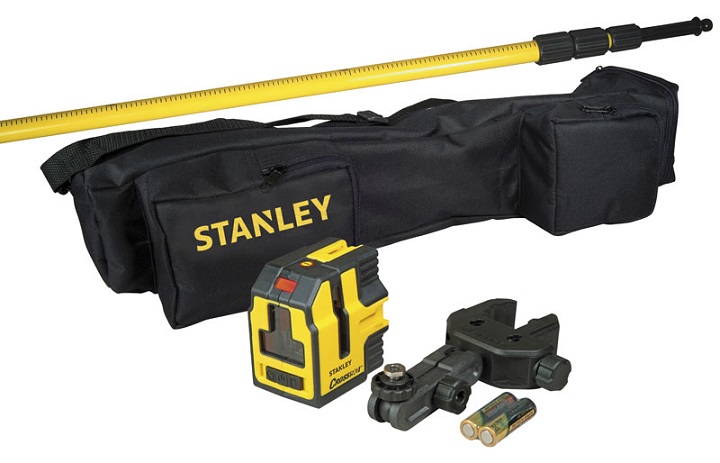 Rif.STHT1-77147. Livella laser Stanley Cross 90™ con asta telescopica. Livella laser autolivellante - traccia una linea a croce ed una seconda linea a 90°. Caratteristiche 3 diodi laser, uno per ogni raggio. Pulsante a 3 posizioni. Pulsante morbido per selezionare la funzione di risparmio batteria. Indicatore visivo di modalità manuale. Indicatore visivo che segnala se lo strumento è fuori livello (in modalità di auto livellamento). Scanalature per l'aggancio rapido del supporto Quicklink. Attacco 1/4".Precisione: ± 0,5 mm/m. Laser classe 1.Diodo laser: 635 Nm.