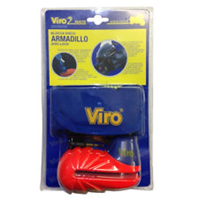 Blocca disco molto robusto e compatto, particolarmente adatto alla chiusura degli scooter e delle moto. Modello Armadillo - Codice Viro 154 Caratteristiche Corpo. Monolitico, verniciato arancione. La forma a scaglie del corpo, rende praticamente impossibile serrarlo con strumenti da morsa per forzarlo. Asta di chiusura. In acciaio ramato, nichelato e cromato, diam. 5,5 mm. Chiavi. In alplacca, con impugnatura ergonomica in ABS antiscivolo, 3 in dotazione di cui una, di colore blu, dotata di pratica luce illumina serratura.Meccanismo. Chiusura a scatto. Barilotto in zama ramata, nichelata e cromata a 7 dischi, ricoperto in ABS antigraffio.Protezione copri serratura, contro l'aggressione degli agenti atmosferici. Cavo "reminder" per evitare di ripartire con il blocca disco inserito.