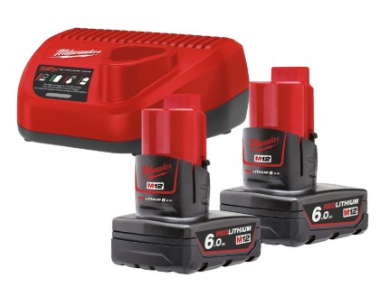 KIT 2 BATTERIE 12V 6Ah + CARICABATTERIE ENERGY KIT - Art. MILWAUKEE 4933451903.